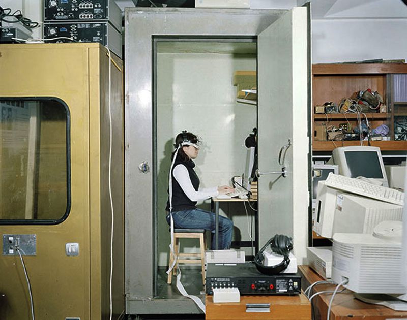 Neben offenbar teuren Apparaturen stehen dort abgewetzte Büromöbel im Bild, Strom- und Datenleitungen knäulen sich zu bizarren Gebilden, die Auslegware wölbt sich in den Ecken. Auch wirken die Versuchsaufbauten nicht selten improvisiert, ein wenig zusammengebastelt.