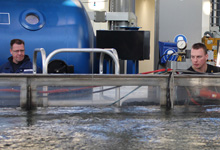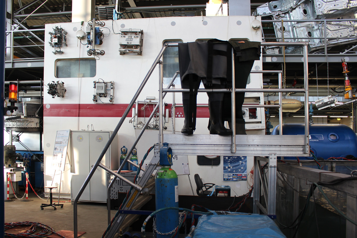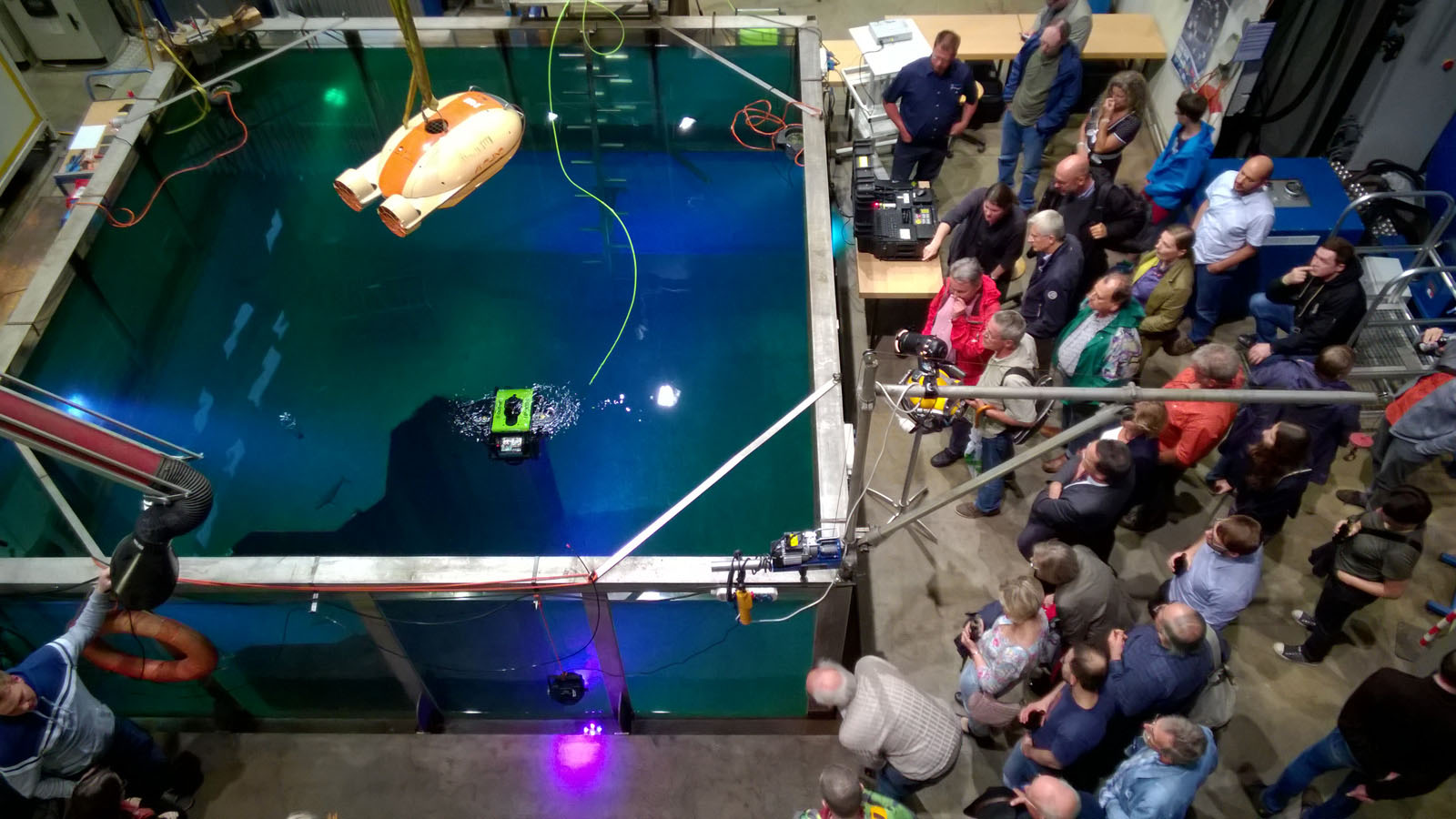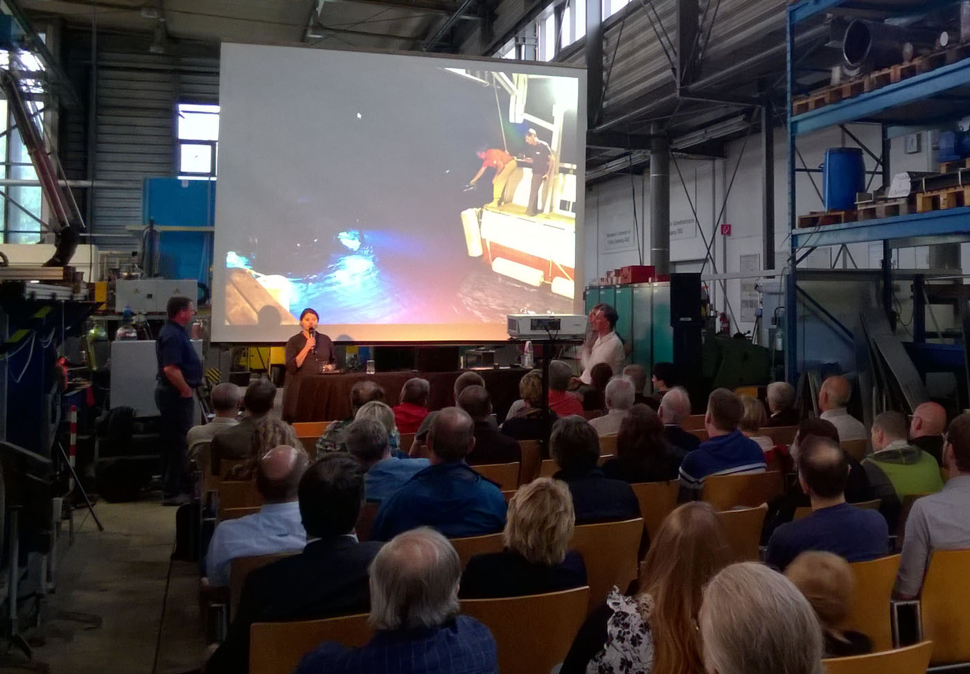 Vor Ort in der markanten dreischiffigen Montagehalle des Unterwassertechnikums stellen der Bereichsleiter Thomas Hassel und seine Kollegen typische Herausforderungen und einschlägige Anwendungen ihres Arbeitsgebietes vor. Als Special Guests erwarten wir den Spezialtaucher Markus Mayer (Lohnde) und die Tauch-Roboter-Pilotin Carola Buchner (Hamburg).