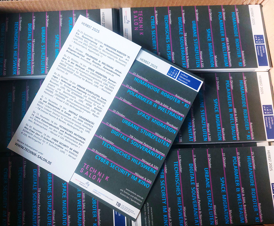 Der Technik-Salon ist das Kulturpodium für Technik an der Leibniz Universität Hannover. Die Veranstaltungen sind öffentlich und wenden sich an das interessierte Stadtpublikum. Eine Voranmeldung ist – außer zu Exkursionen und Besichtigungen – nicht erforderlich.